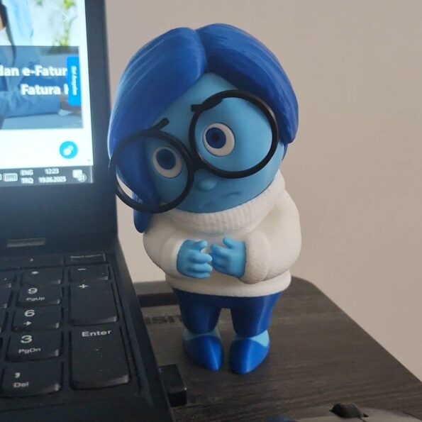 Duygusal anlatımı ve özgün tasarımıyla dikkat çeken üzgün karakter figürü, masaüstünüze veya koleksiyon rafınıza anlam katar. El boyaması renk geçişleri ve yumuşak hatlarıyla içten bir atmosfer yaratır. 3D baskı teknolojisi ile çevre dostu PLA malzemeden üretilmiştir.